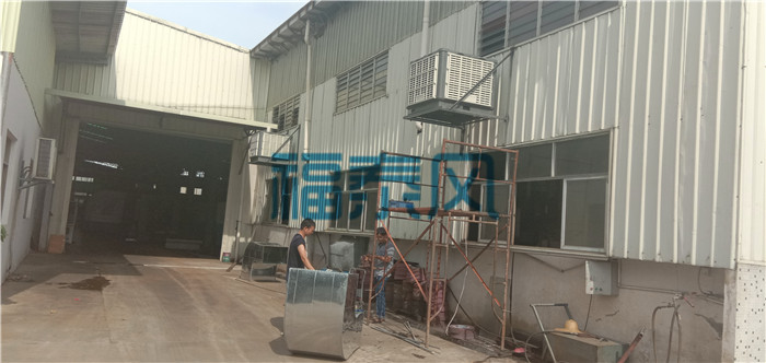 2、鐵皮房本是比較導熱,而且天氣熱時候鐵皮的導熱性能比較強這讓車間的環境更糟糕,鐵皮房車間面積大,有比較高,那么環保空調就能做到通風換氣,降溫,輸送鮮風的作用