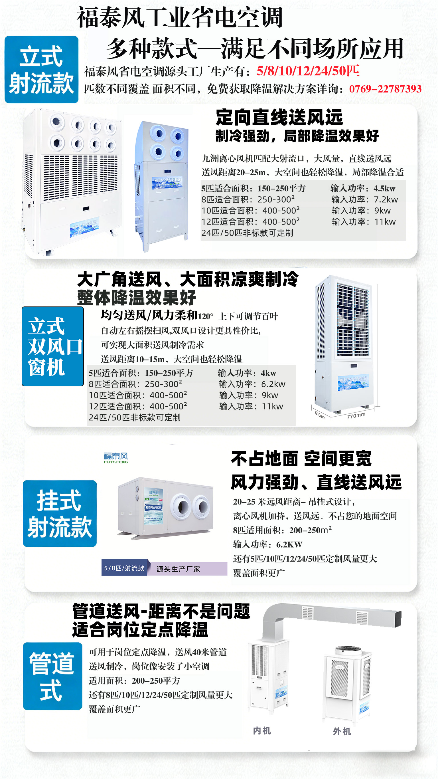款式多樣有吊掛式,射流款,立式,管道式工業省電空調滿足不同車間降溫需求